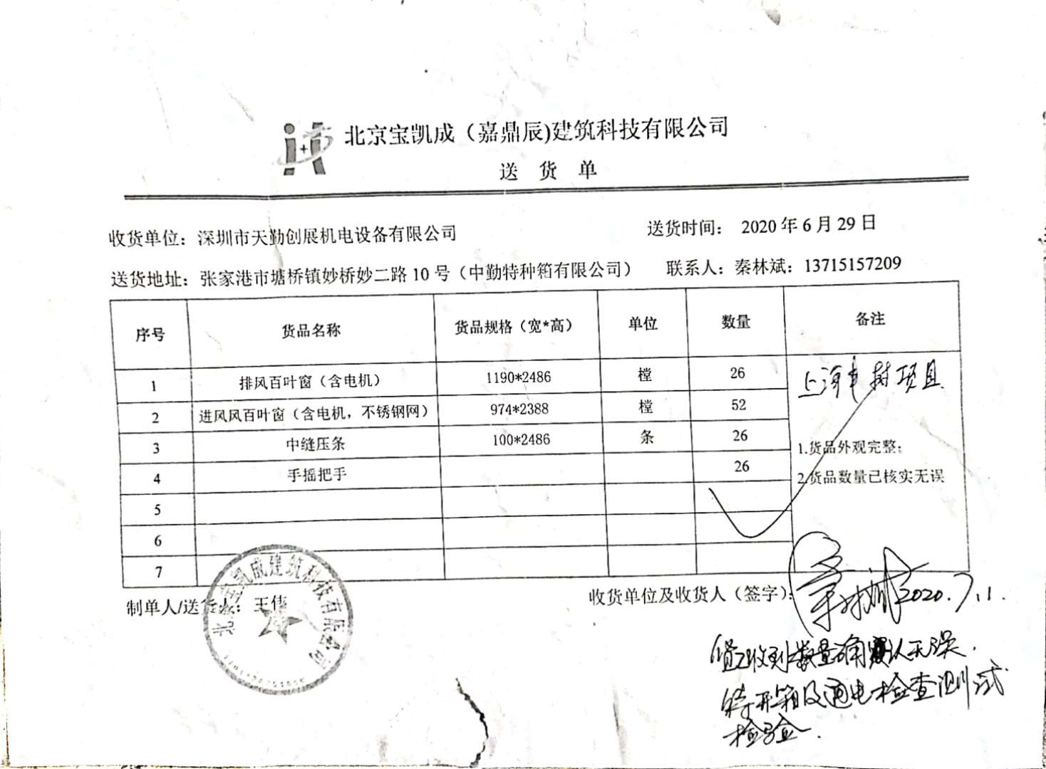熱烈祝賀《深圳市天勤創展機電設備有限》訂購嘉鼎辰公司的產品,您訂購的百葉窗產品已在物流裝車發出(物流訂單編號等詳細信息您可以詢問在線客服人員),預計在3日內到達。很快我們的技術人員將和您采購的產品一起到現場調試安裝并培訓使用方法!請做好接貨及驗貨卸車準備,有問題請及時與本公司聯系。衷心感謝您對嘉鼎辰百葉窗的大力支持與對本產品的信任,期待與您的下次合作。